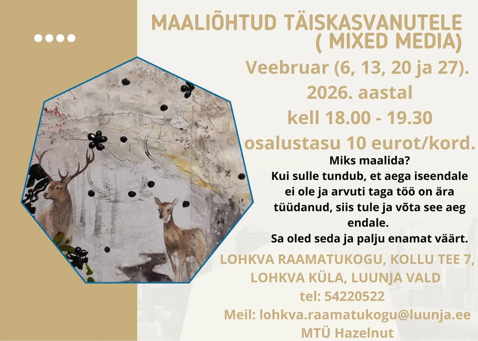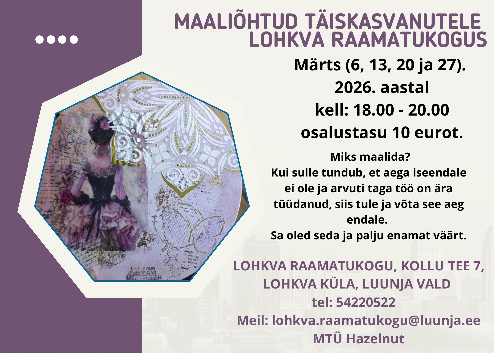Maaliõhtud märtsikuus Lohkva raamatukogus igal reedel kell 18-20
