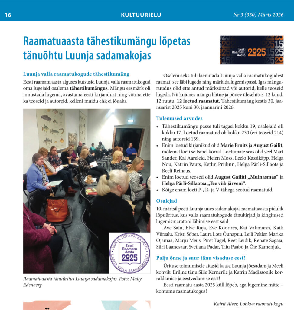 Raamatuaasta 2025 tähestikumängu tänuõhtu Luunja sadamakojas